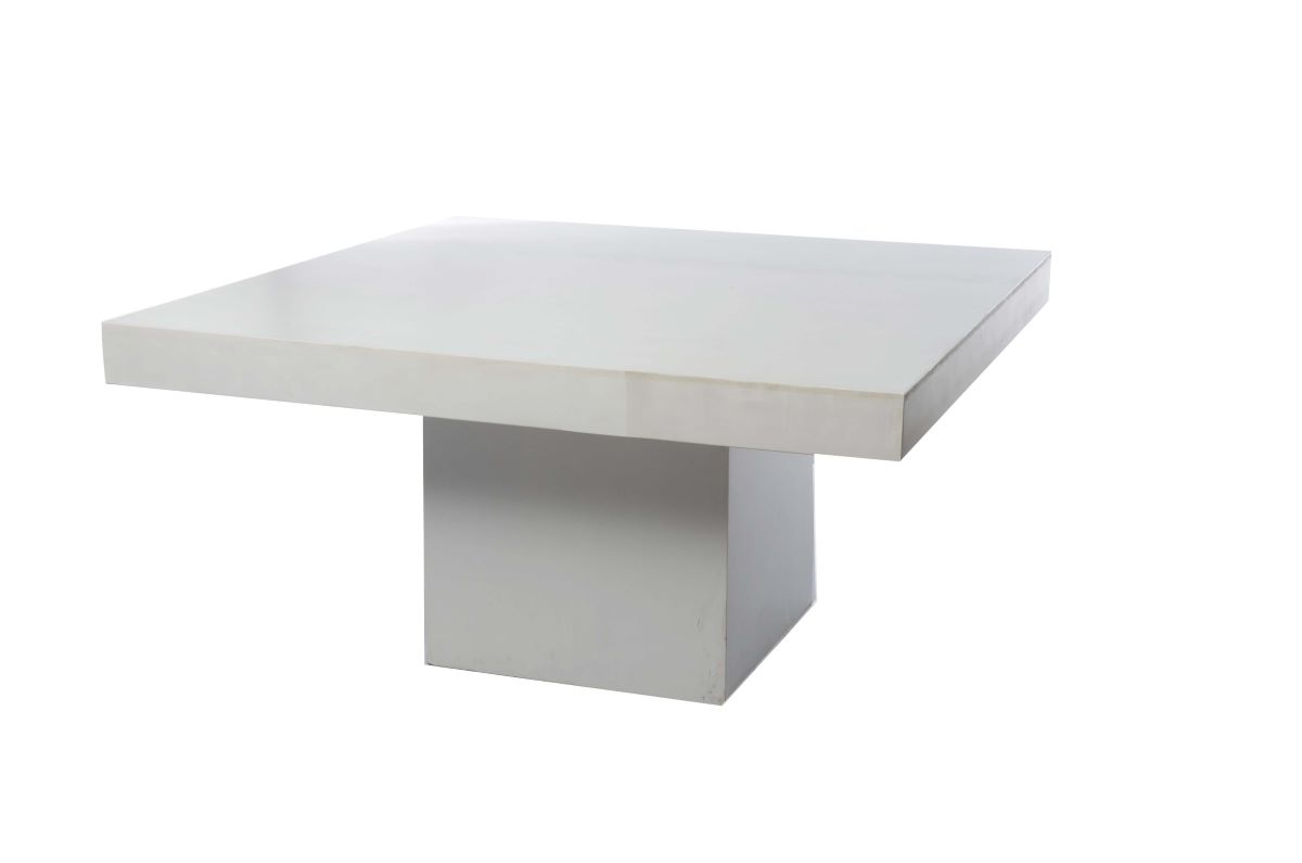 Wooden Square Table on short plinths. Can comfortably seat 10 people.
