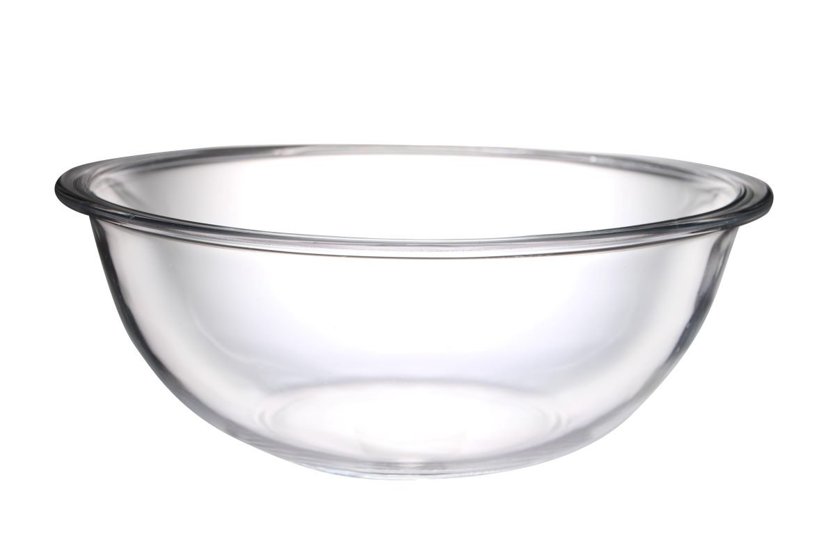 Glass bowl to serve food or for cooking and baking