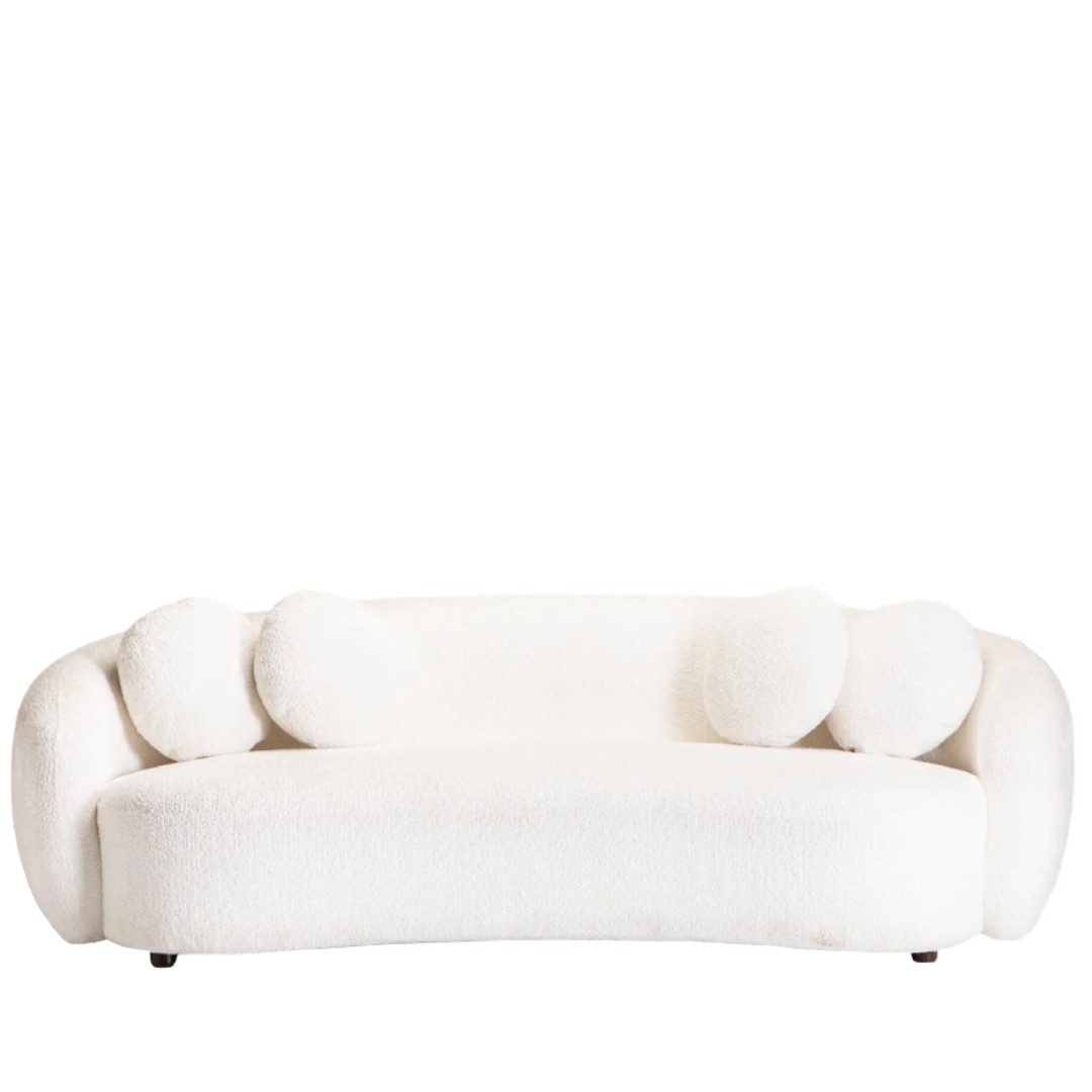 The Halo Curved Triple Seater in ivory features a soft, sweeping silhouette and a seamless wrap-around back. Its minimalist design and plush upholstery offer a clean, sophisticated look for any high-end lounge or event space.