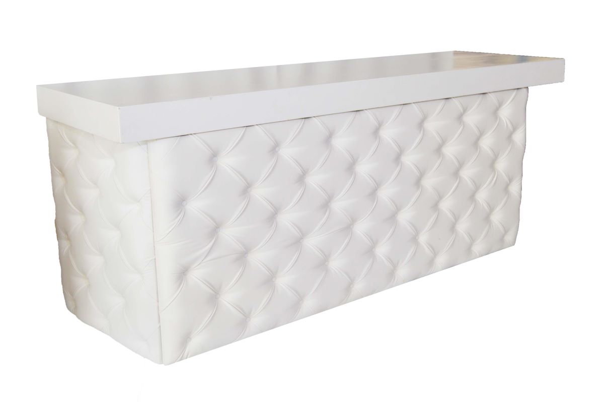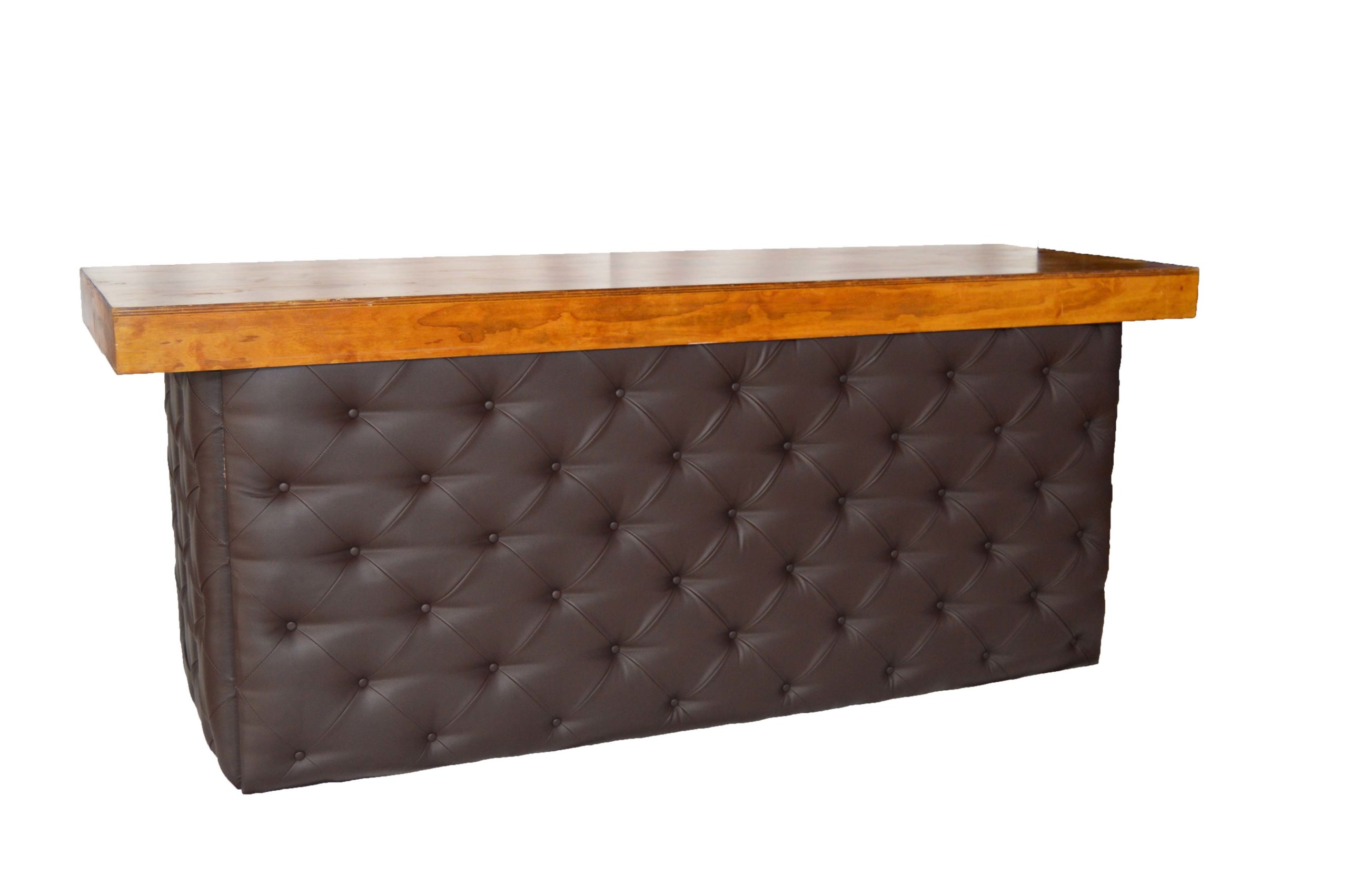 Fabric buttoned bar front. Can be used as a bar or food counter.