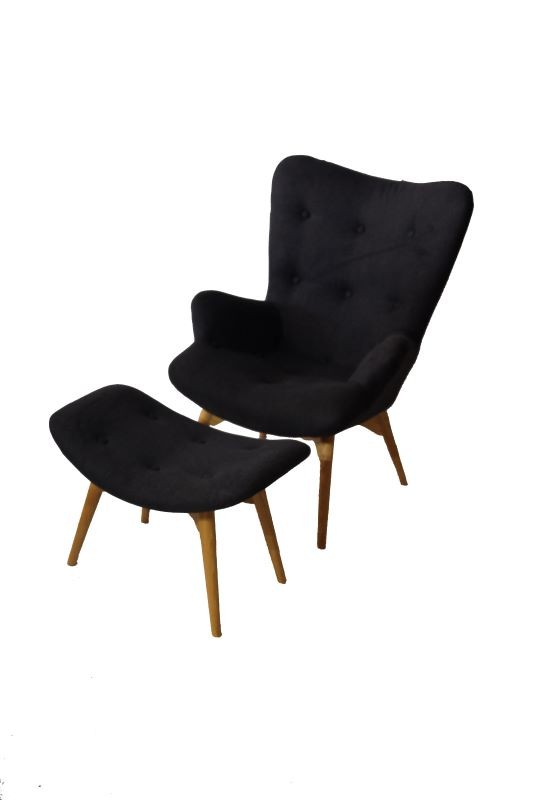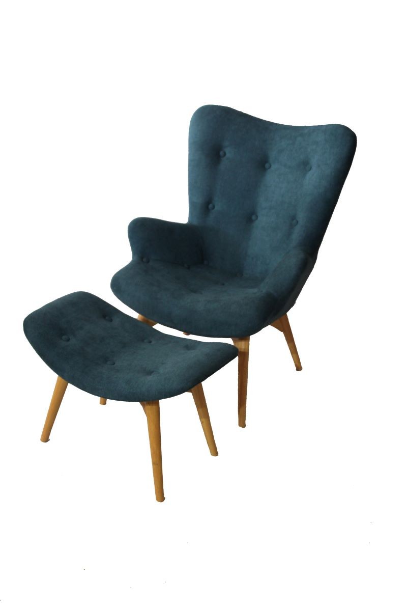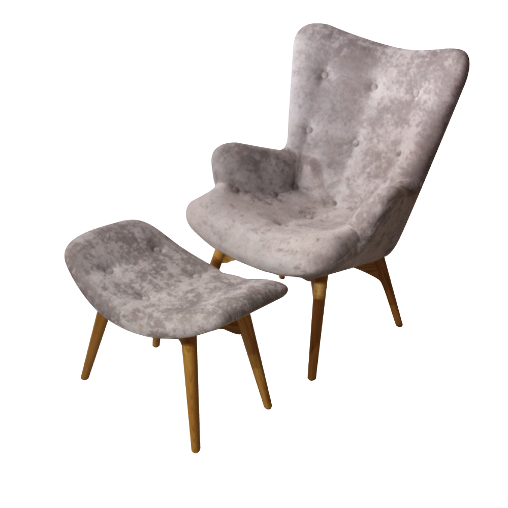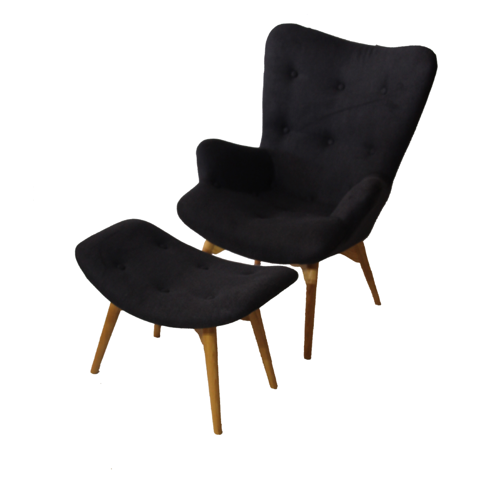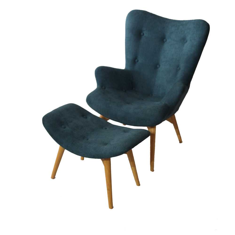 A buttoned, high back chair with a foot stool. Great addition to lounge pockets at any event type