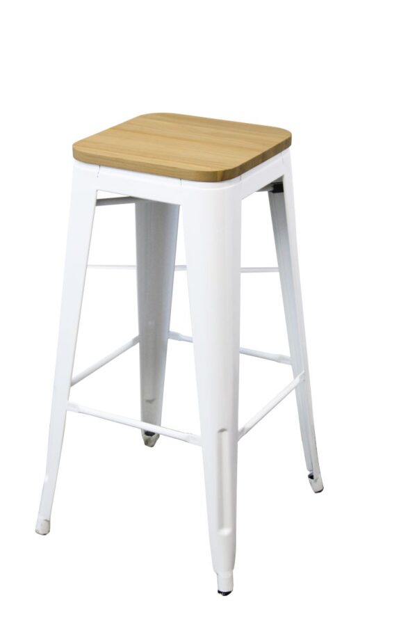 WHITE XAVIER BARSTOOL (WITH WOODEN SEAT) FOR HIRE