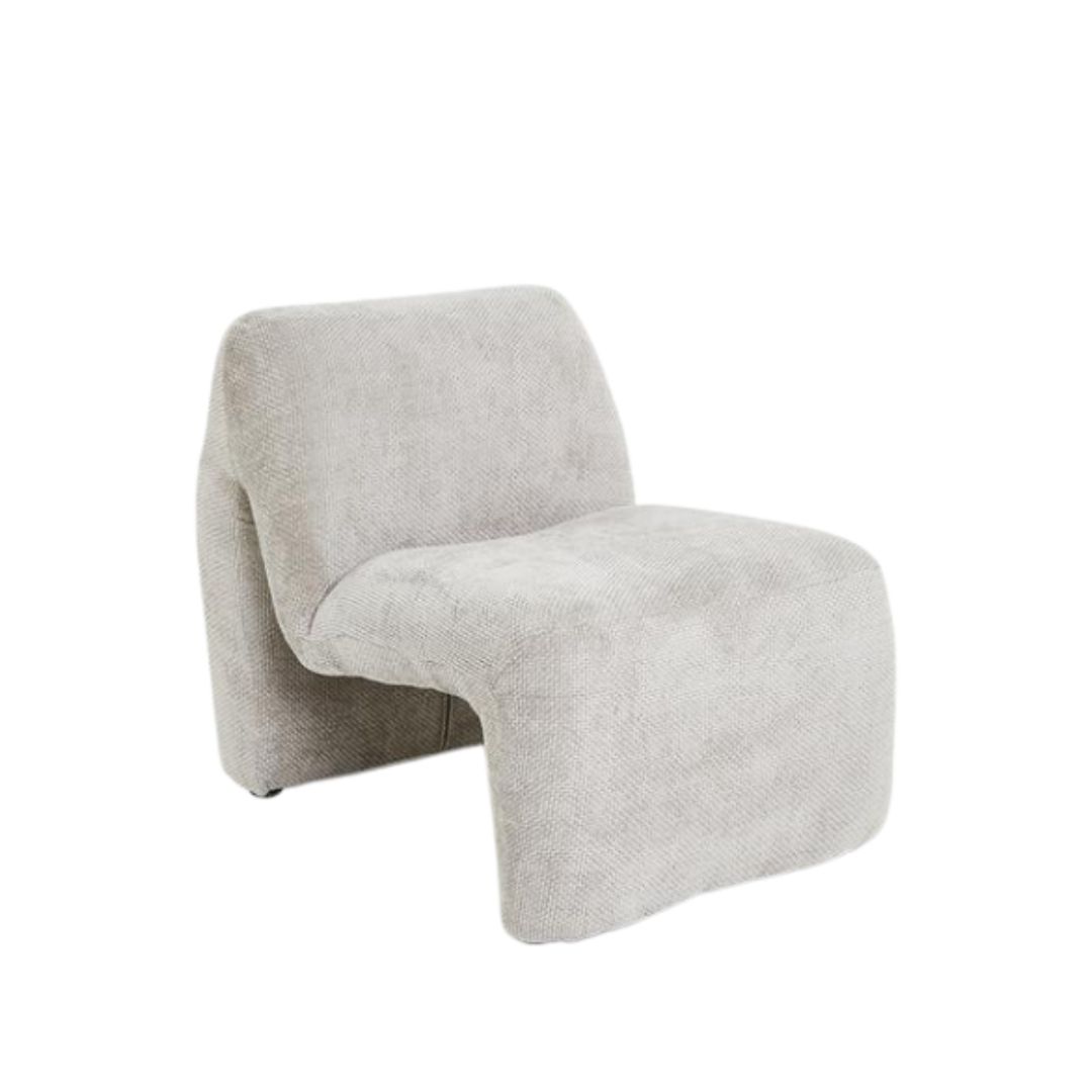 A plush, rounded accent chair with deep cushioning and soft, embracing curves.